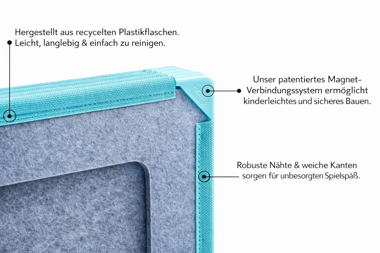 Ja. Creatix™ besteht aus sicheren und langlebigen Materialien mit weichen Kanten und einem kindersicheren Magnetsystem.